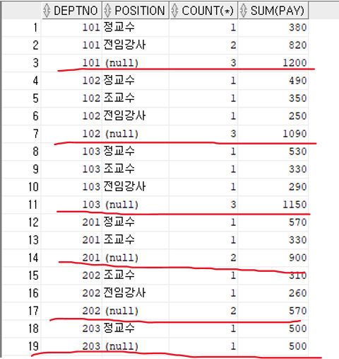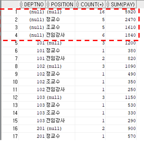 -> position의 널 부분이 소계값이다.