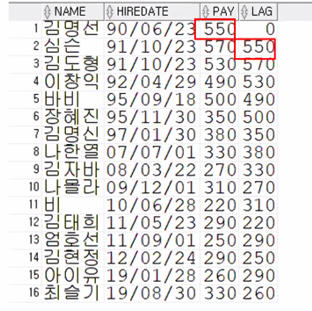 -> 이전 행 값을 가져올 때 사용하는 함수