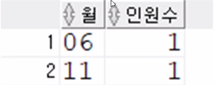 select to_char(birthday, 'mm') 월, count(birthday) 인원수