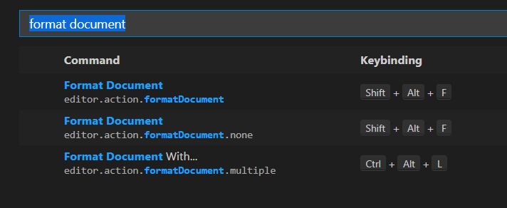 끝 괄호 사이사이에 콤마를 넣어주고 format documnet 단축키 실행