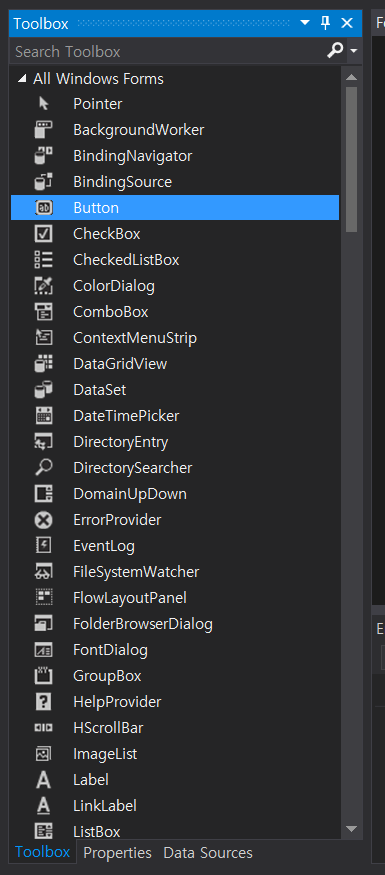 - 툴박스에서 원하는 컨트롤을 선택해 윈도우 폼에 배치가 가능합니다.