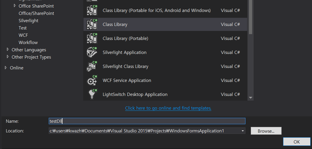 이후 DLL 파일을 생성하기 위한 Class Library 프로젝트를 추가합니다.