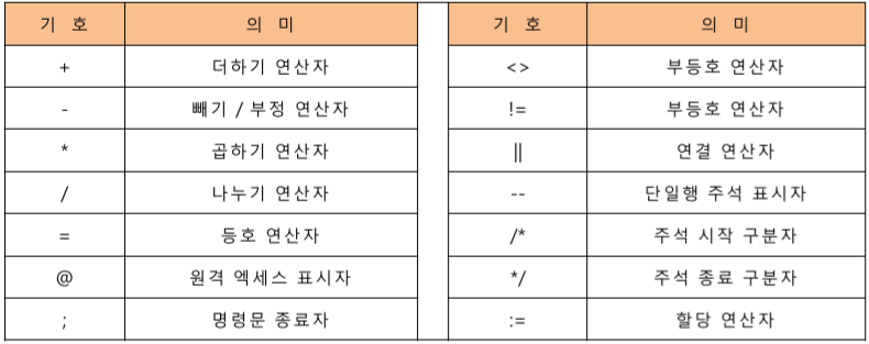 - 예를 들어 SQL 문장을 끝낼 때는 끝내는 의미를 가진 ; (세미콜론)을 사용.