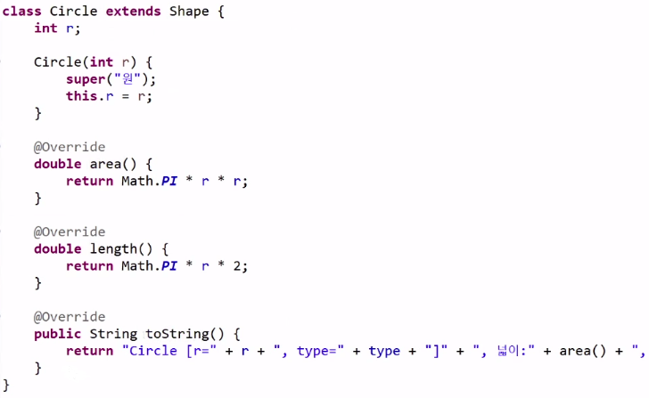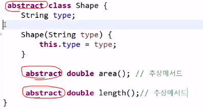 -> 추상 메서드에서 구현해야할 area()와 length()는 반드시 구현해야 에러가 안난다.