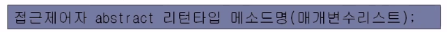 -> 추상 클래스라면 이 부분들에 반드시 abstract 키워드를 필수적으로 써야한다.