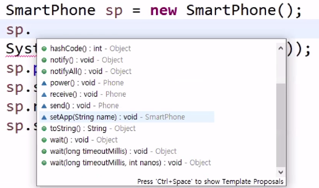 -> 이렇게 모든 클래스들은 자신이 구현하지 않아도 이미 Object 클래스에 구현되어 있는 메소드들을 활용할 수 있다.