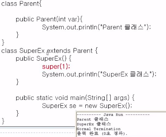 -> super()메소드: 슈퍼클래스의 생성자를 호출