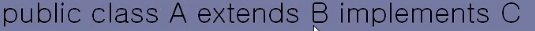 -> 인터페이스는 implements 를 사용해서 일종의 상속을 구현한다. 인터페이스를 상속 받을 때에는 extends 대신에 implements 를 사용