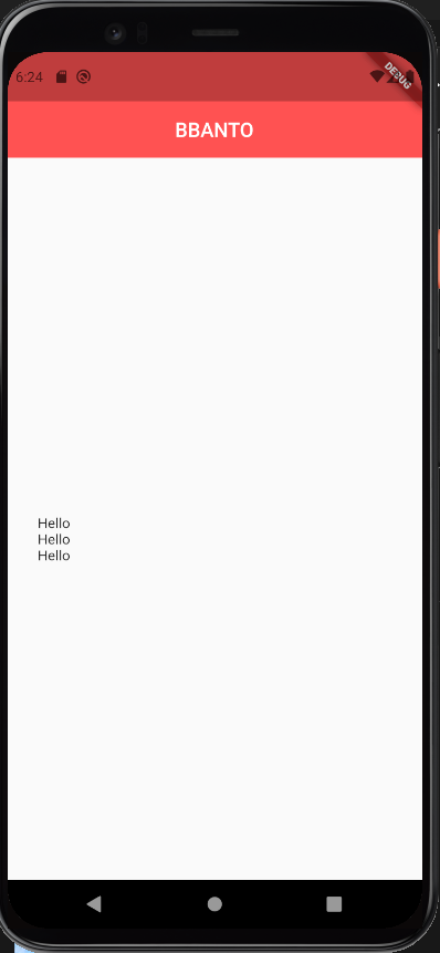 [기존 코드에서 MainAxisAlignment 속성을 주석 처리했을 때 결과 화면]
