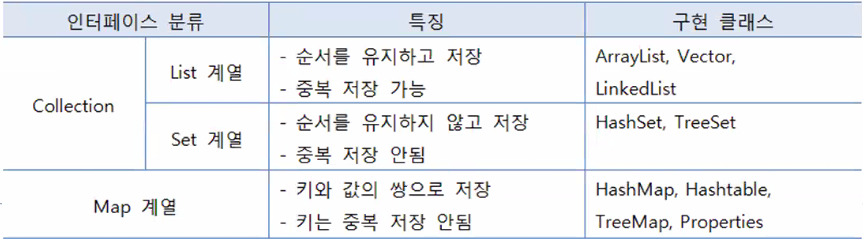 -> 인터페이스를 통해서 정형화된 다양한 컬렉션 클래스를 이용