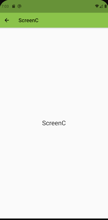 import 'package:flutter/material.dart'; class ScreenC extends StatelessWidget { const ScreenC({Key? key}) : super(key: key); @override Widget build(BuildContext context) { return Scaffold( appBar: AppBar( title: Text('ScreenC'), ), body: Center( child: Text('ScreenC', style: TextStyle( fontSize: 24.0 ), ), ), ); } }[결과 화면]