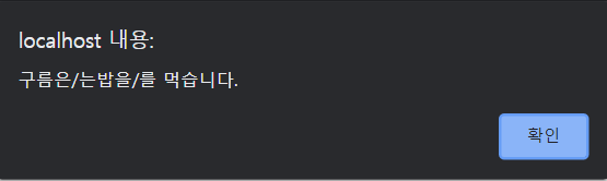 <!DOCTYPE html> <html> <head> <meta charset="EUC-KR"> <title></title> <script> //변수를 선언 const pet = { name: '구름', eat: function (food) { alert(this.name + '은/는' + food + '을/를 먹습니다.') } } //메소드 호출하기 pet.eat('밥') </script> </head> <body> </body> </html>