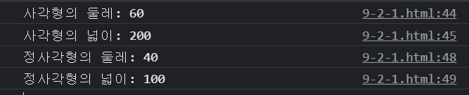 <!DOCTYPE html> <html> <head> <meta charset="EUC-KR"> <title></title> <title></title> <script> class Rectangle { constructor (width, height) { this.width = width this.height = height } // 사각형의 둘레를 구하는 메소드 getPerimeter () { return 2 * (this.width + this.height) } // 사각형의 넓이를 구하는 메소드 getArea () { return this.width * this.height } } class Square { constructor(length) { this.length = length } // 정사각형의 둘레를 구하는 메소드 getPerimeter() { return 4 * this.length } // 정사각형의 넓이를 구하는 메소드 getArea() { return this.length * this.length } } const rectangle = new Rectangle(10, 20) console.log(`사각형의 둘레: ${rectangle.getPerimeter()}`) console.log(`사각형의 넓이: ${rectangle.getArea()}`) const square = new Square(10) console.log(`정사각형의 둘레: ${square.getPerimeter()}`) console.log(`정사각형의 넓이: ${square.getArea()}`) </script> </head> <body> </body> </html>
