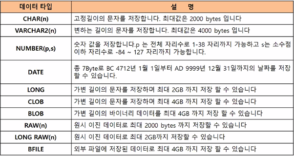[오라클의 데이터 형]