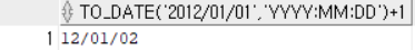 select to_date('2012/01/01', 'yyyy:mm:dd')+ 1 from dual;