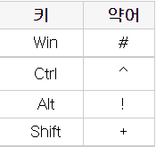 먼저 오토 핫키는 특수키를 특정 문자와 매칭되어 있다.